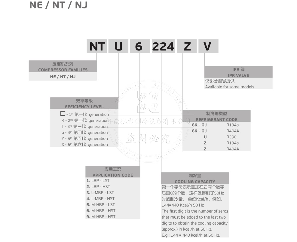 | 型號 | 制冷劑 | 電壓 | 頻率 | 應用 | 馬力 | 頻率/回轉 | 冷量 | 排氣量 (cm3) | 潤滑油類別 | 電機型號 | 啟動扭矩 | 測試類型 |